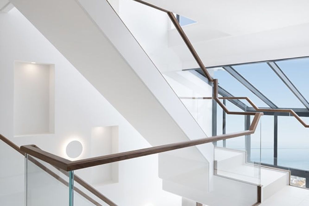 Our latest extension and remodelling project of a Brighton home has completed its internal transformation from standard 1970s house to contemporary chic. The changes included opening up a central hall with feature cantilevered staircase and a new roof room with stunning views over Brighton Marina and the sea.